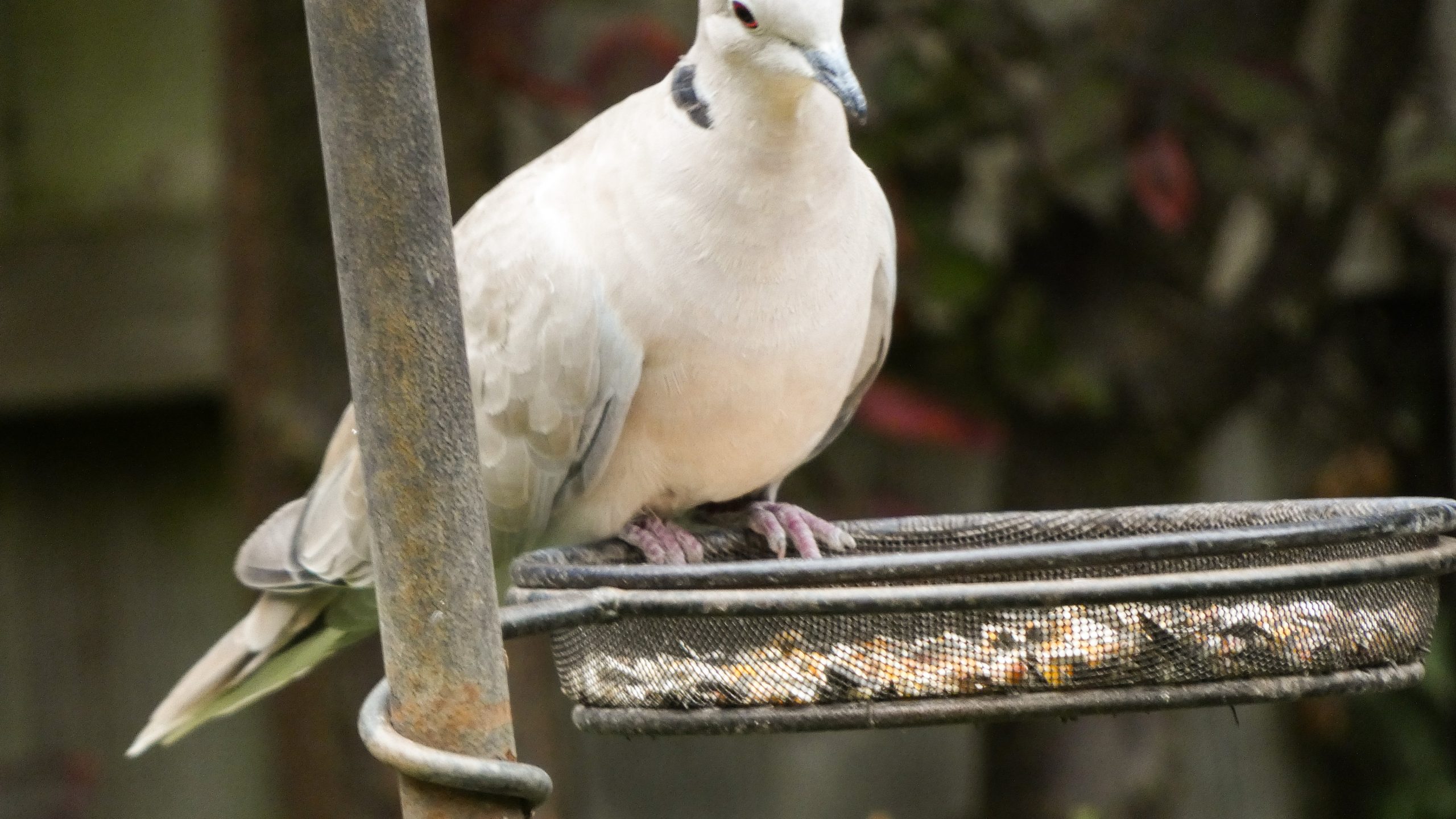 Ma nagyon kellemes, huszonfokok voltak nálunk. Udvarunk pár lakója ki is használta a kellemes időt. A kisgalamb úgy döntött, bár az emberek azt mondják: a veréb is madár, de ő nem osztja a véleményt. Az egyik etetőbe beült, néha falatozott, nem engedett oda a verebekből egyet sem.
