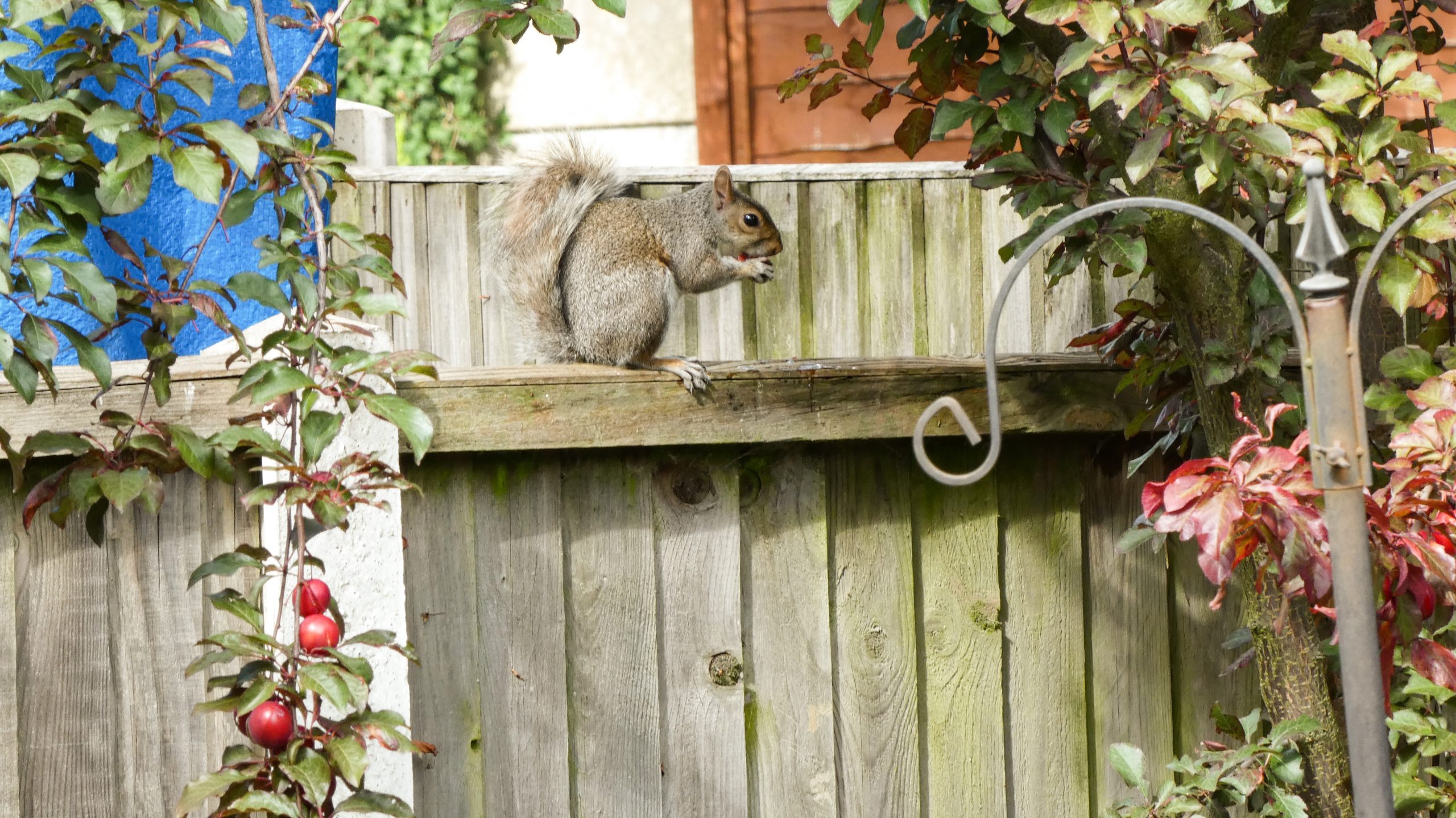Ma is a kis mókucikról mesélek. Amint látható, csak a fa legvékonyabb, lelógó ágain található a szilvából. Még ezért is lemásznak a vékony ágon és a kerítésen elfogyasztják. A másik kép: Éppen a muskátlimat igyekeznek átültetni. Szorgalmas kis jószágok.